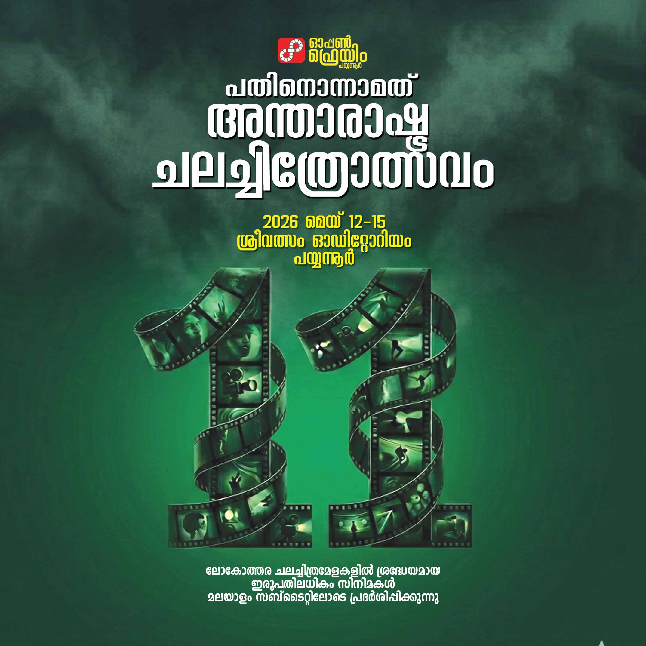 പയ്യന്നൂർ ഓപ്പൺ ഫ്രെയിം സംഘടിപ്പിക്കുന്ന പതിനൊന്നാമത് അന്താരാഷ്ട്ര ചലച്ചിത്രോത്സവത്തിന്റെ ഓൺലൈൻ രജിസ്ട്രേഷൻ ആരംഭിച്ചു. 2026 മെയ് 12 മുതൽ 15 വരെ പയ്യന്നൂർ ശ്രീവത്സം എ സി ഓഡിറ്റോറിയത്തിൽ വച്ചാണ് ചലച്ചിത്രോത്സവം നടക്കുന്നത്. ഗോവ തിരുവനന്തപുരം ഉൾപ്പെടെ ലോകത്തിലെ പ്രധാന ചലച്ചിത്രമേളകളിൽ പുരസ്കാരങ്ങൾ നേടിയ 20 സിനിമകളാണ് മലയാളം സബ്ടൈറ്റുകളോടെ ഓപ്പൺ ഫ്രെയിം അന്താരാഷ്ട്ര ചലച്ചിത്രോത്സവത്തിൽ പ്രദർശിപ്പിക്കുക. മലയാള സിനിമ, ഇന്ത്യൻ സിനിമ, ഡോക്യുമെൻ്ററികൾ തുടങ്ങിയ വിഭാഗങ്ങളും ഉണ്ടാകും. ചലച്ചിത്രമേളയോടനുബന്ധിച്ച് ഓപ്പൺ ഫോറങ്ങൾ, മുഖാമുഖങ്ങൾ, പ്രഭാഷണങ്ങൾ എന്നിവയും സംഘടിപ്പിക്കും.